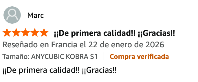 La Anycubic Kobra 3 Combo ha recibido una excelente acogida por parte de los usuarios, quienes la califican con 4.2 de 5 en Amazon. Los comentarios destacan su eficiencia, facilidad de uso y calidad de impresión, con frases como: